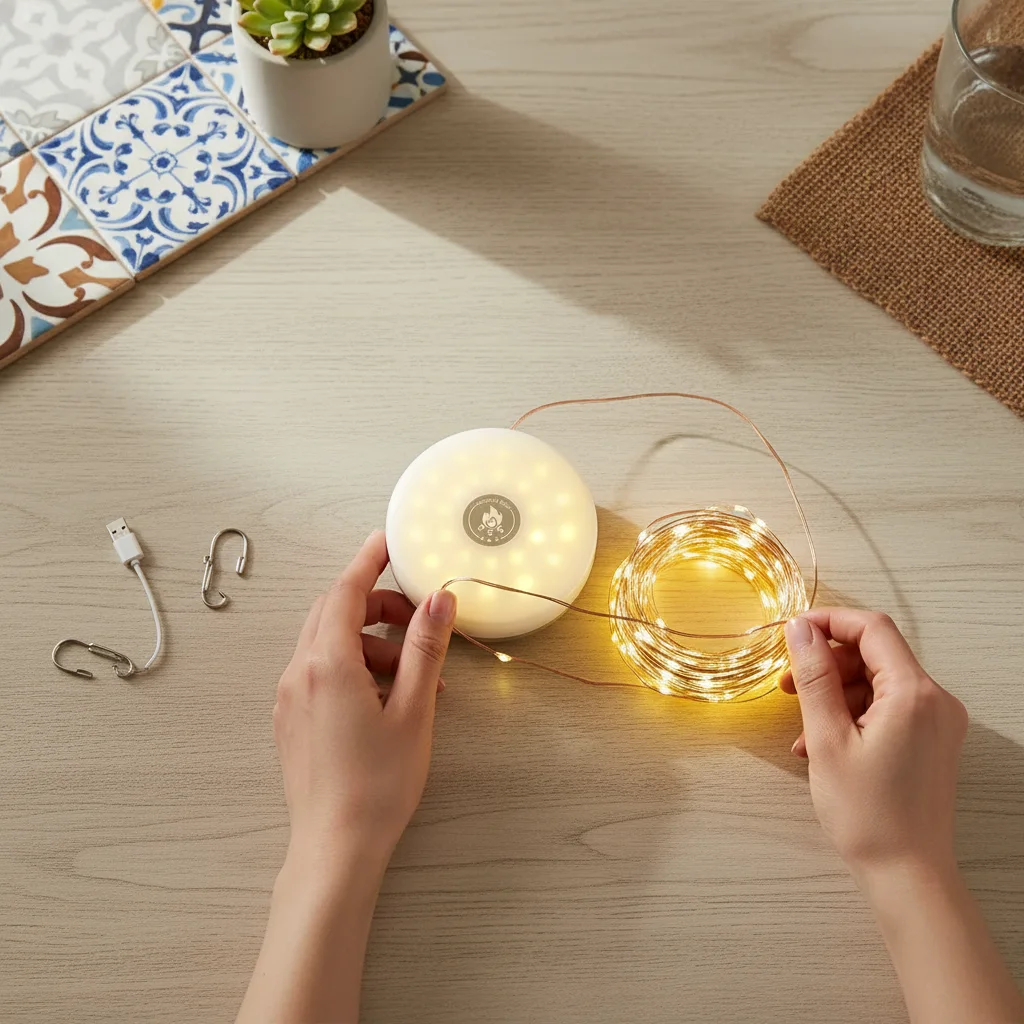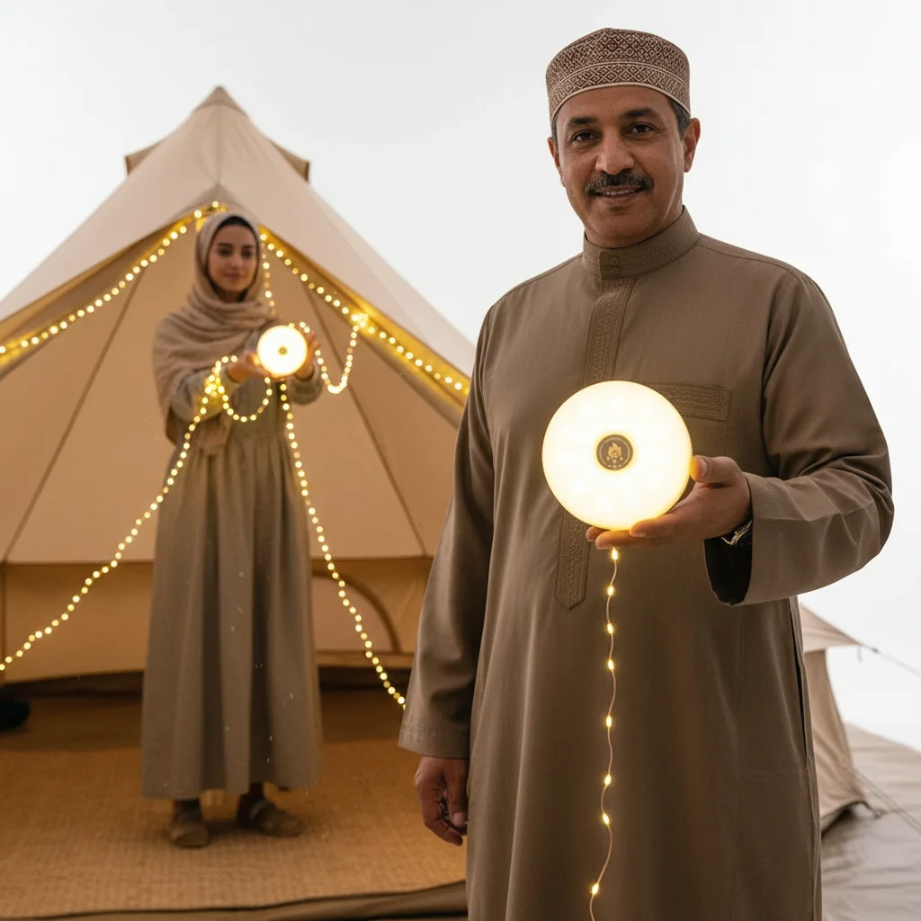 مصباح التخييم مصنوع من مادة ABS عالية الجودة، شفافة وناعمة، توفّر إضاءة مريحة لا تؤذي العينين حتى مع الاستعمال الطويل.